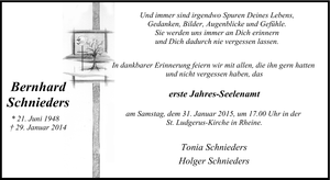 Jahres-Seelenamt Bernhard Schnieders