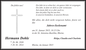 Jahres-Seelenamt Hermann Dohle