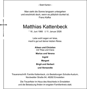 | † | Montag, | 12. | 01. | 2026 |