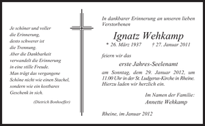 Jahres-Seelenamt Ignatz Wehkamp