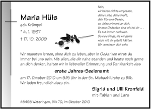 Jahres-Seelenamt Maria Hüls