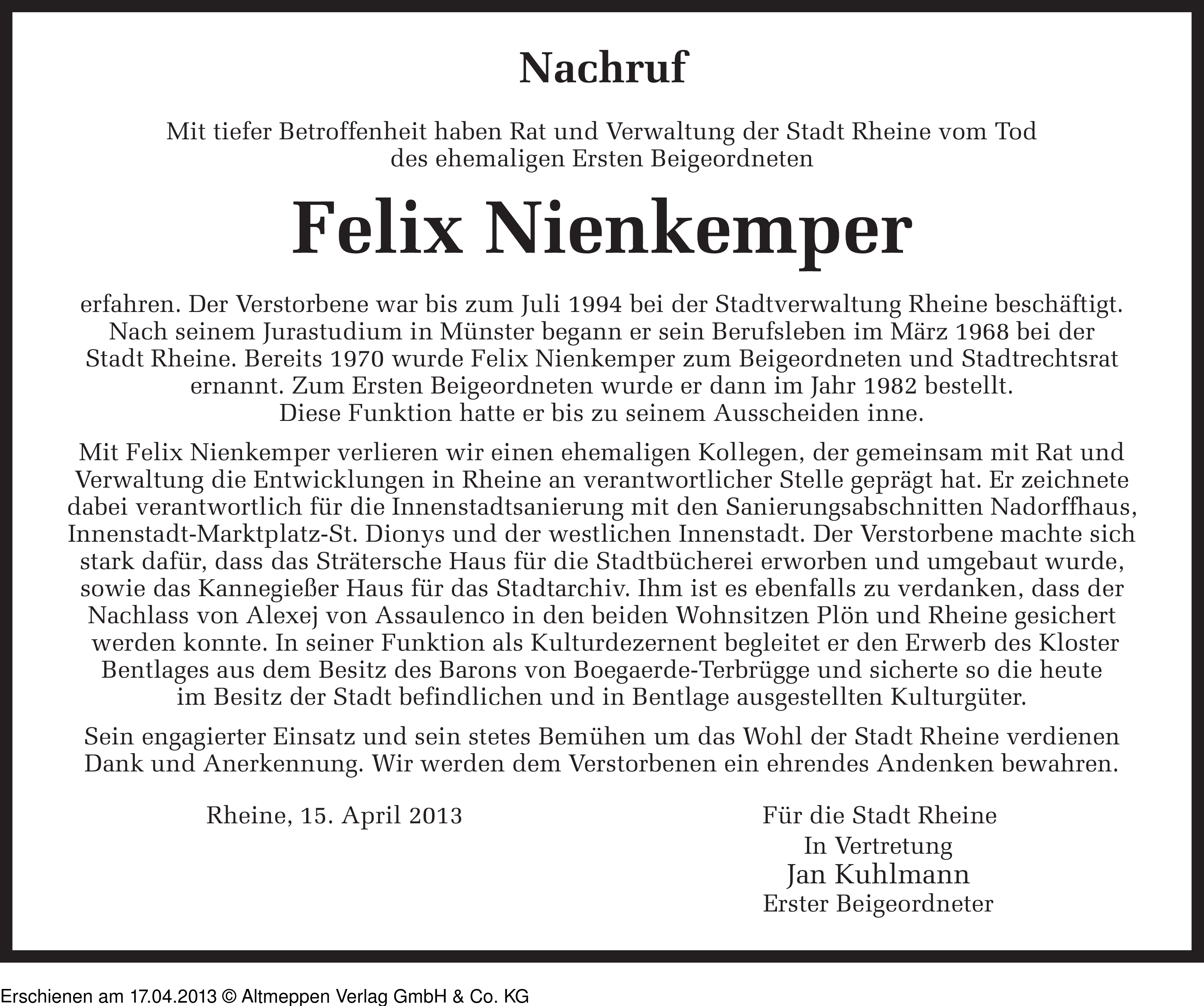 Anzeige vom 17.04.2013
