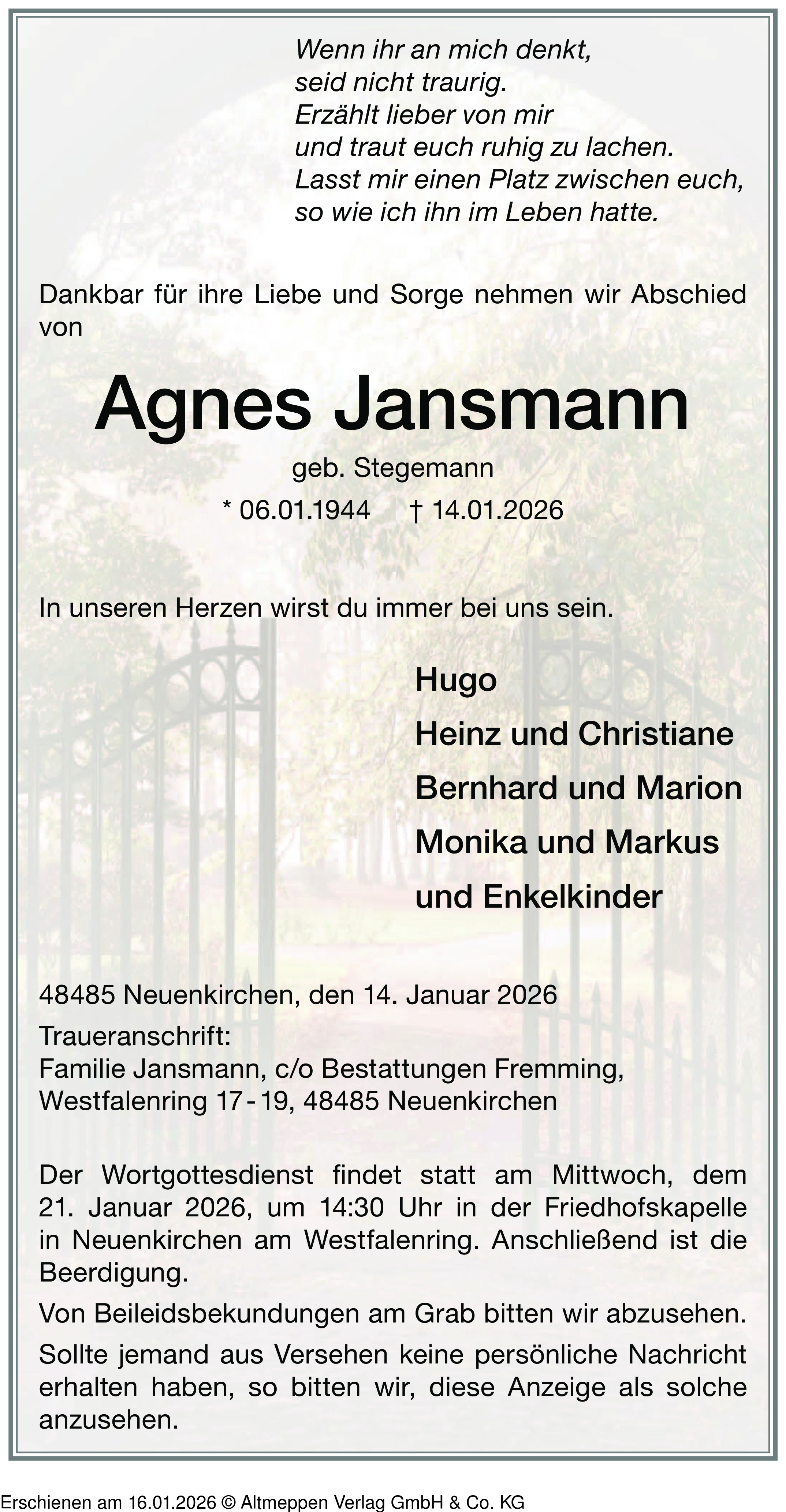 Anzeige vom 16.01.2026