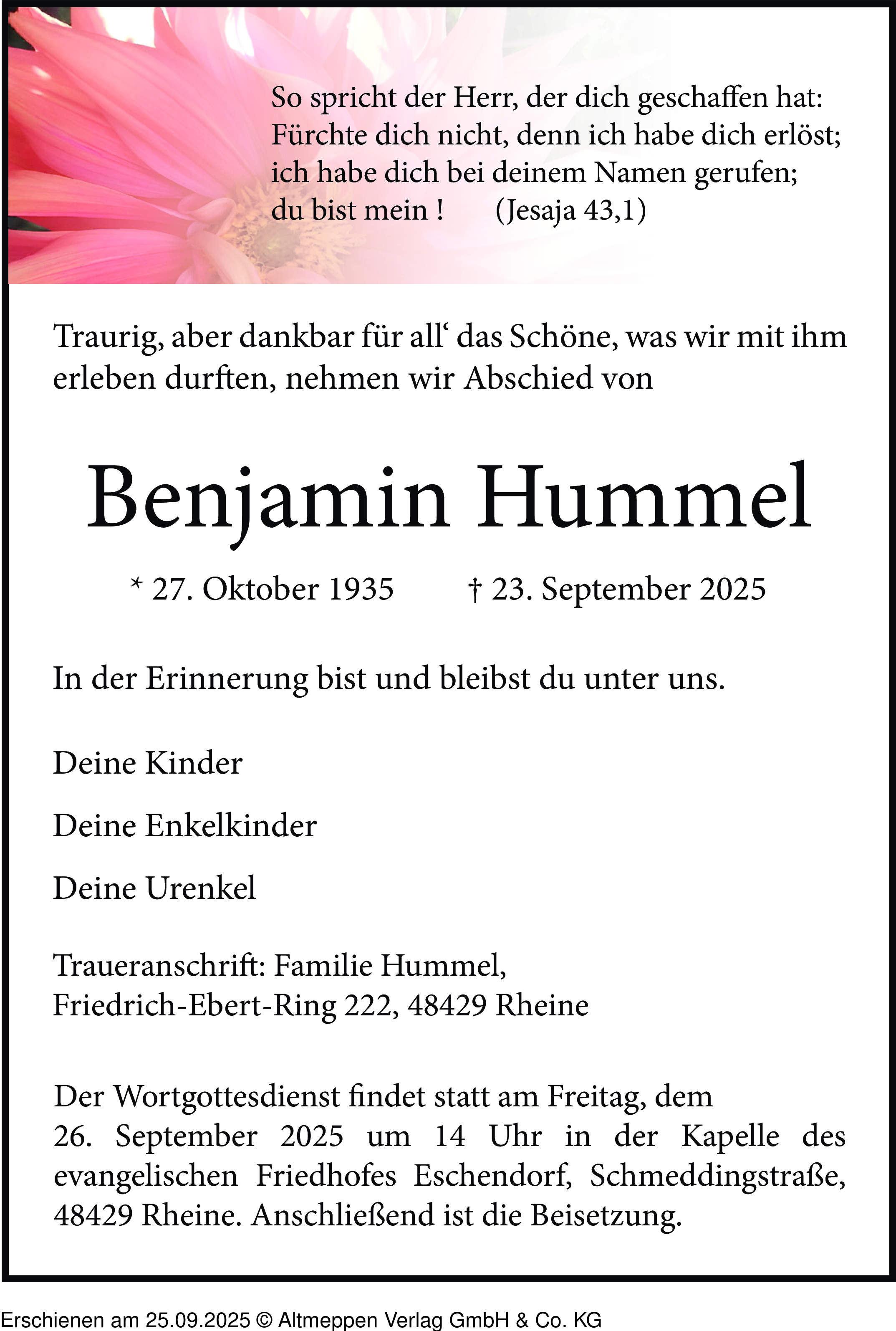 Anzeige vom 25.09.2025