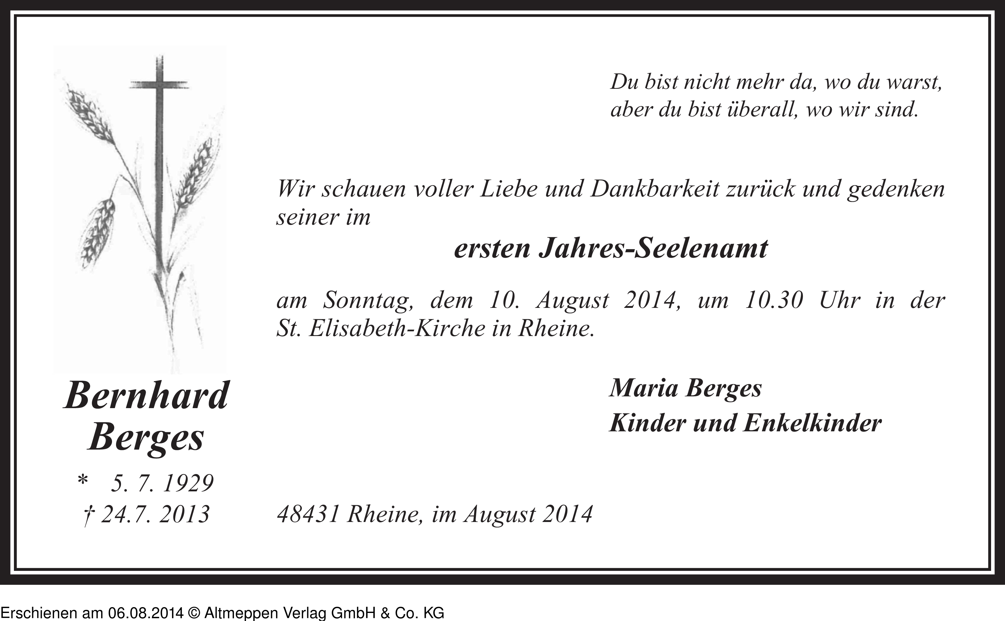 Anzeige vom 06.08.2014