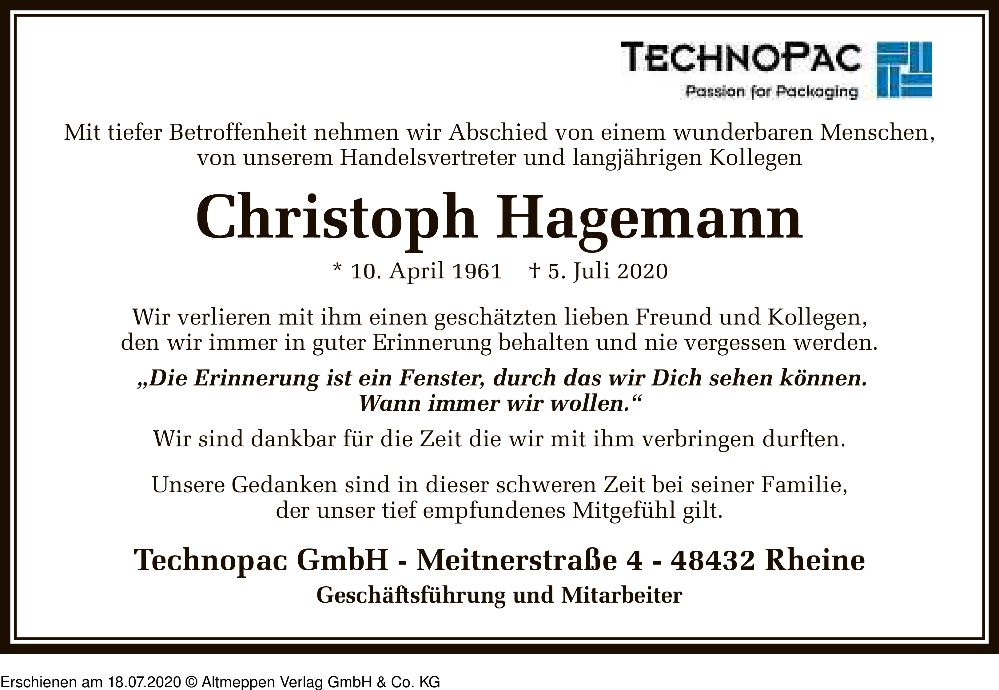 Anzeige vom 18.07.2020