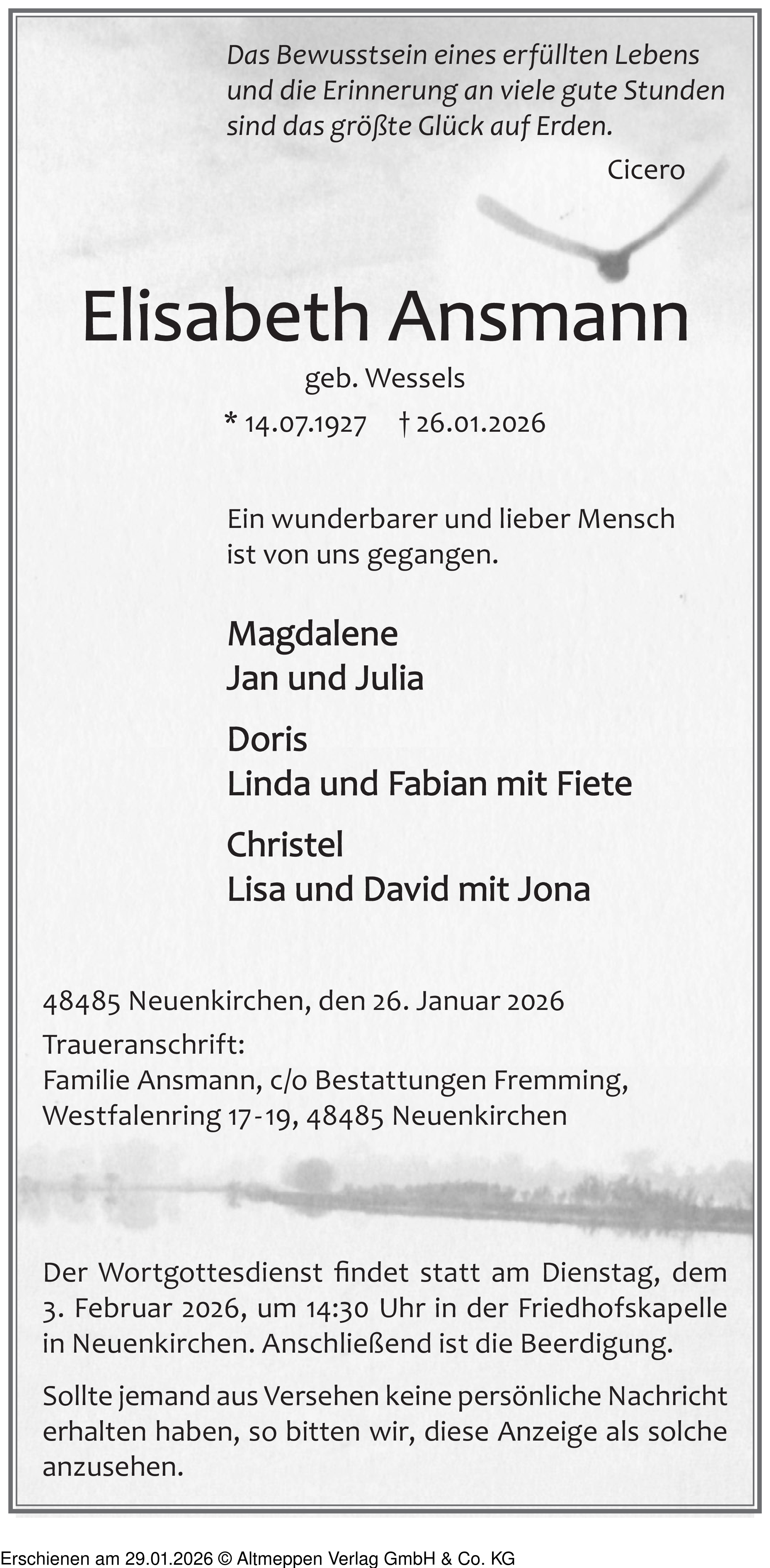 Anzeige vom 29.01.2026