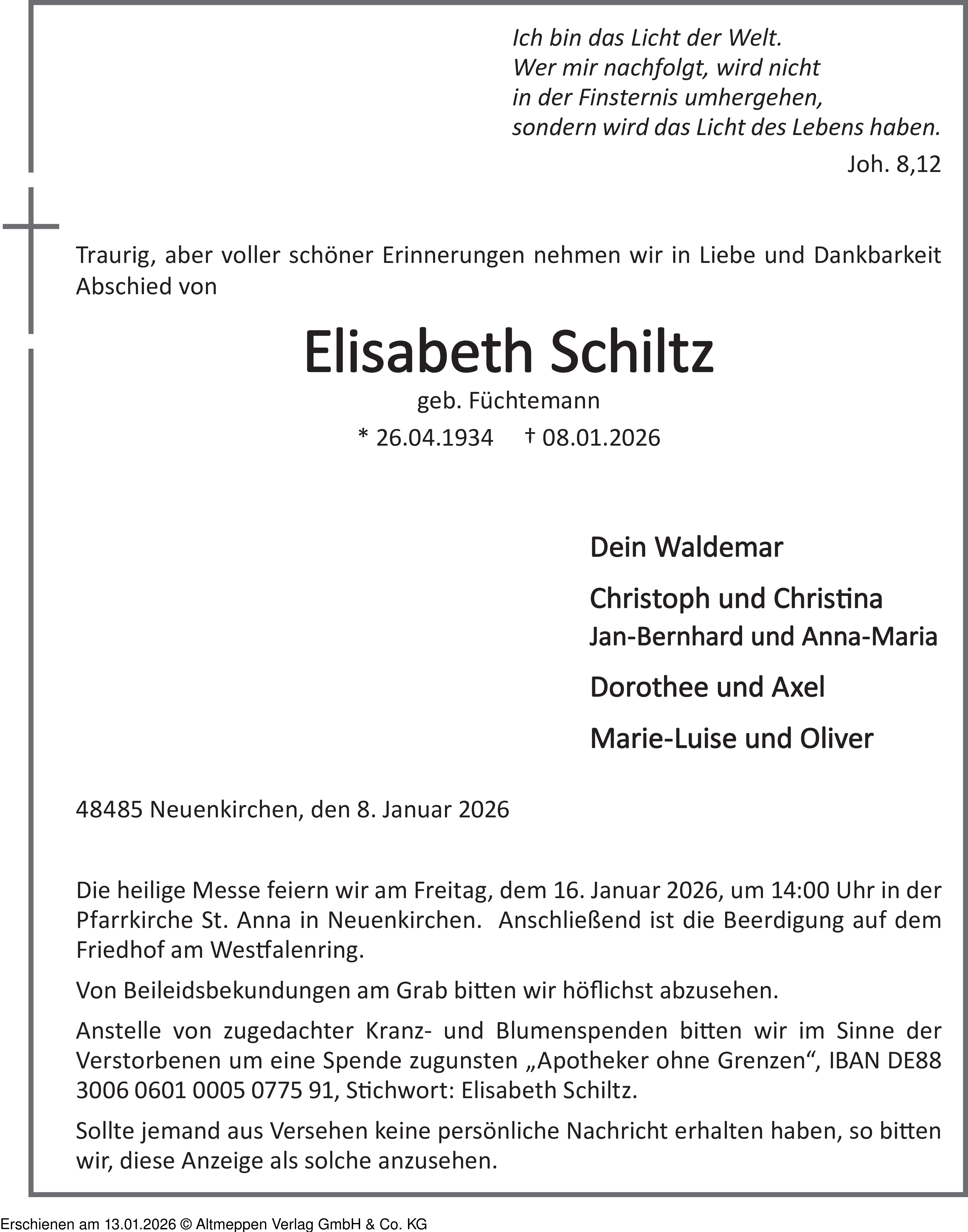 Anzeige vom 13.01.2026