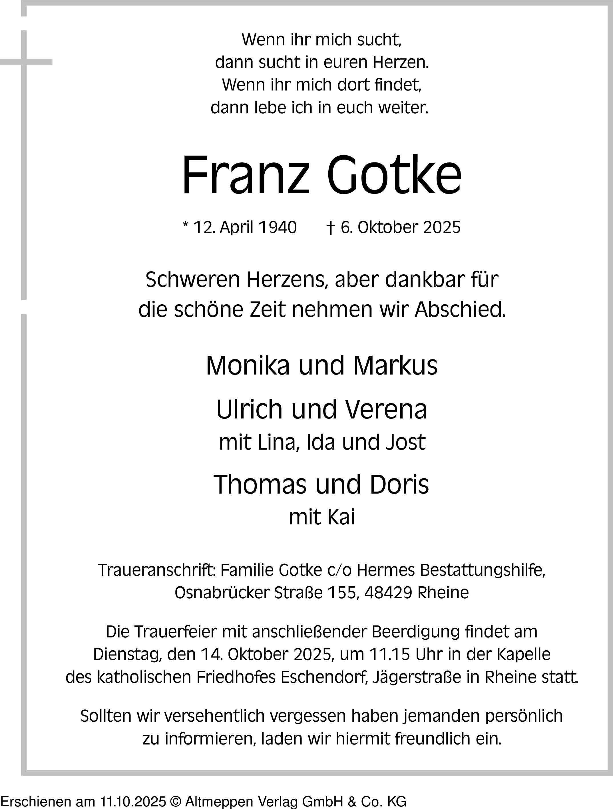 Anzeige vom 11.10.2025