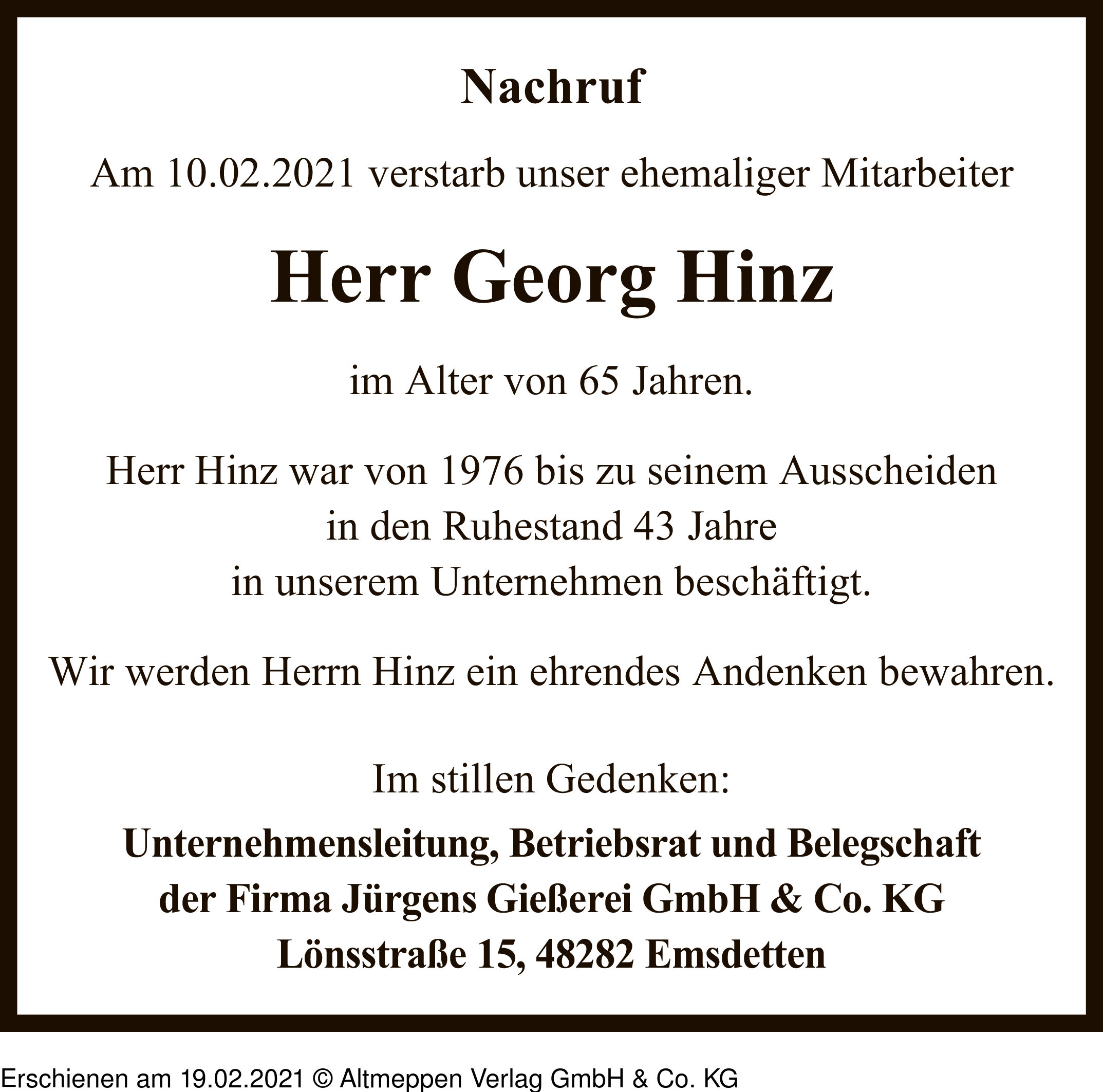 Anzeige vom 19.02.2021