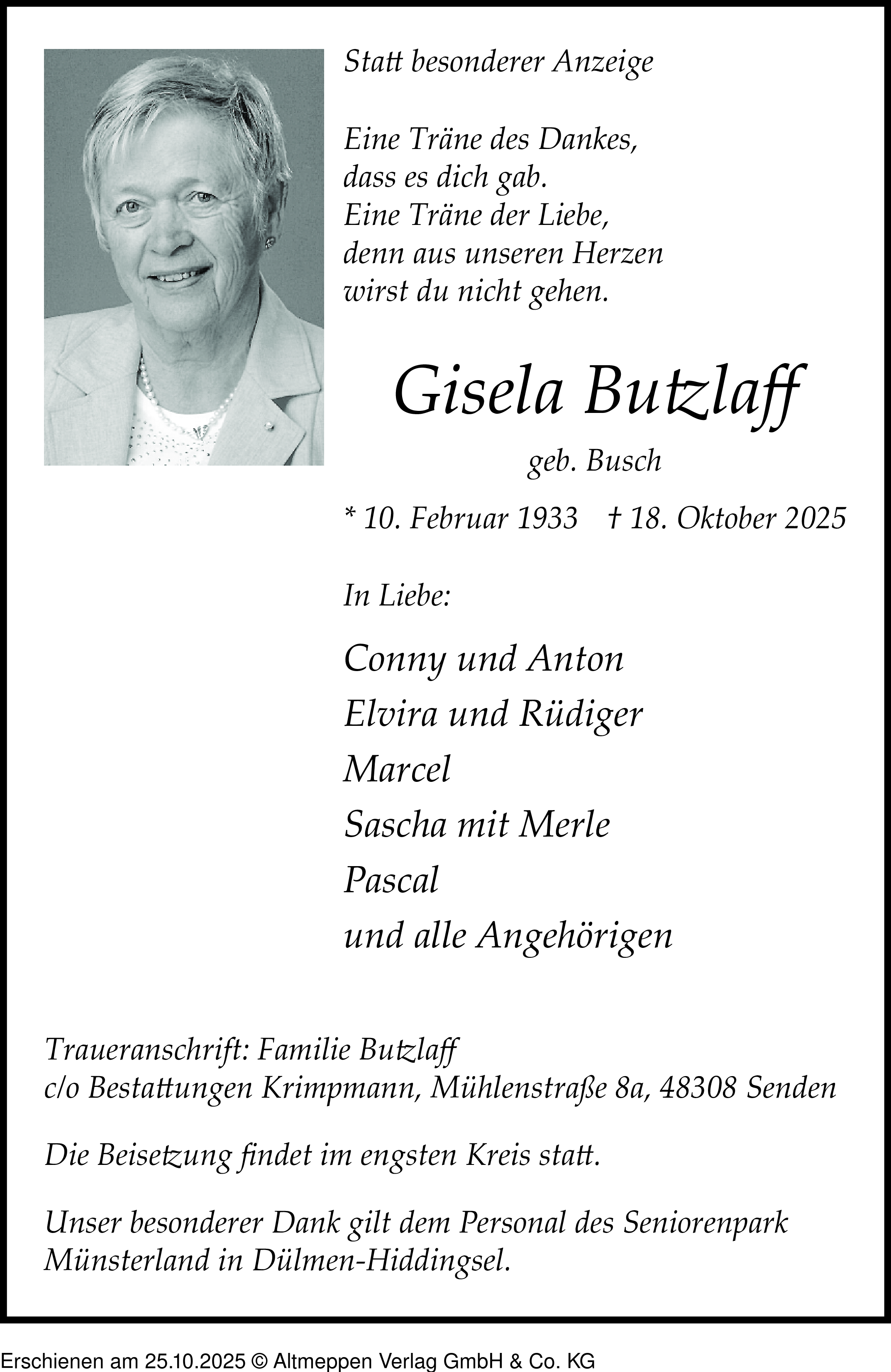 Anzeige vom 25.10.2025