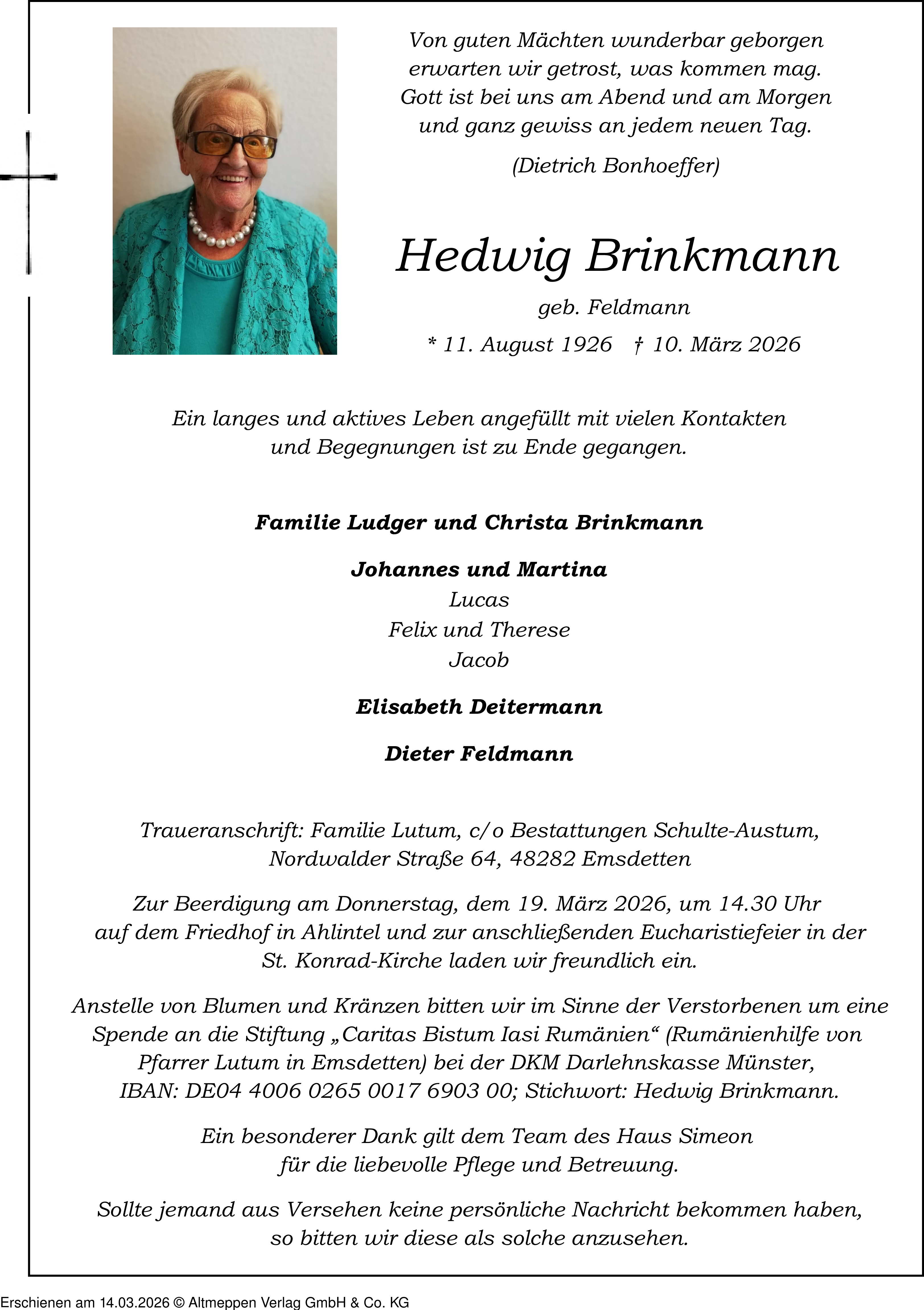 Anzeige vom 14.03.2026
