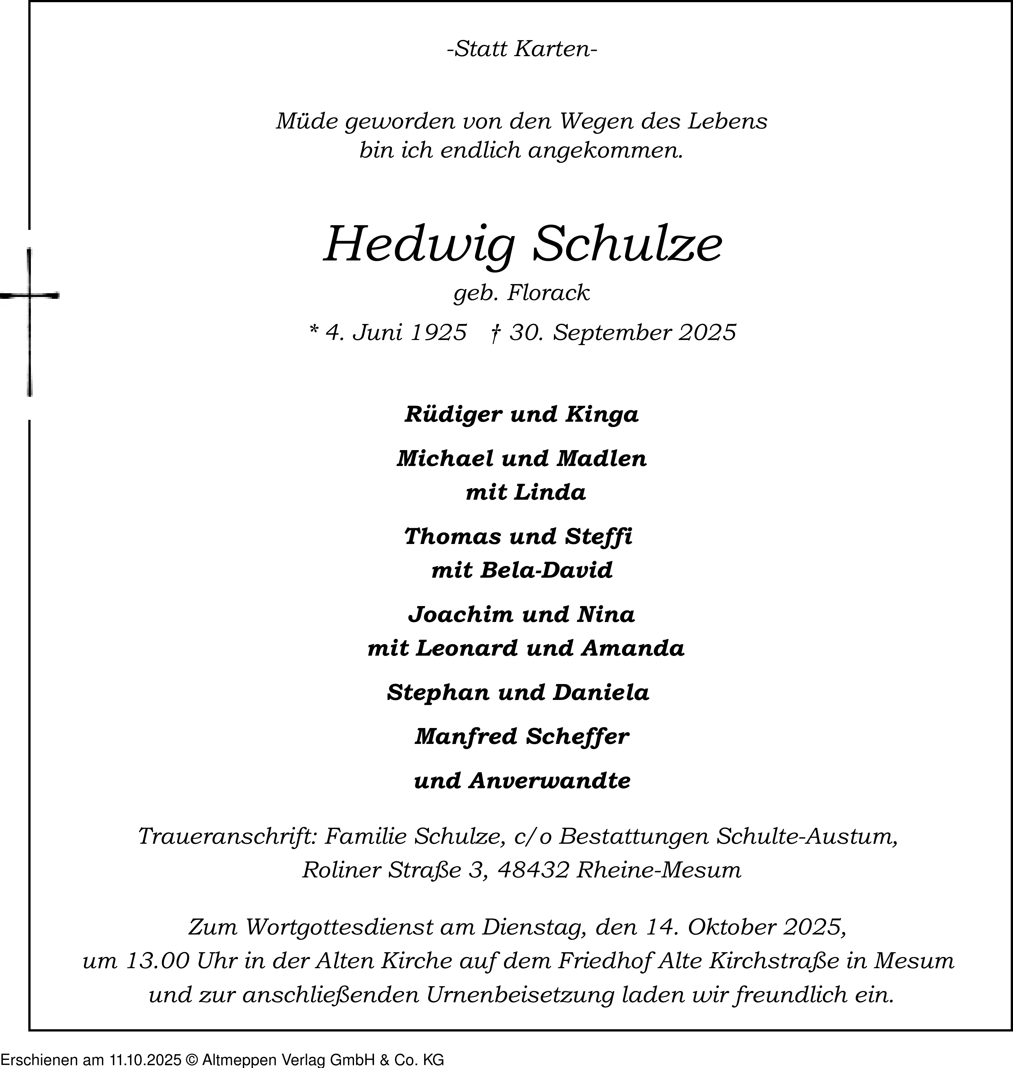 Anzeige vom 11.10.2025