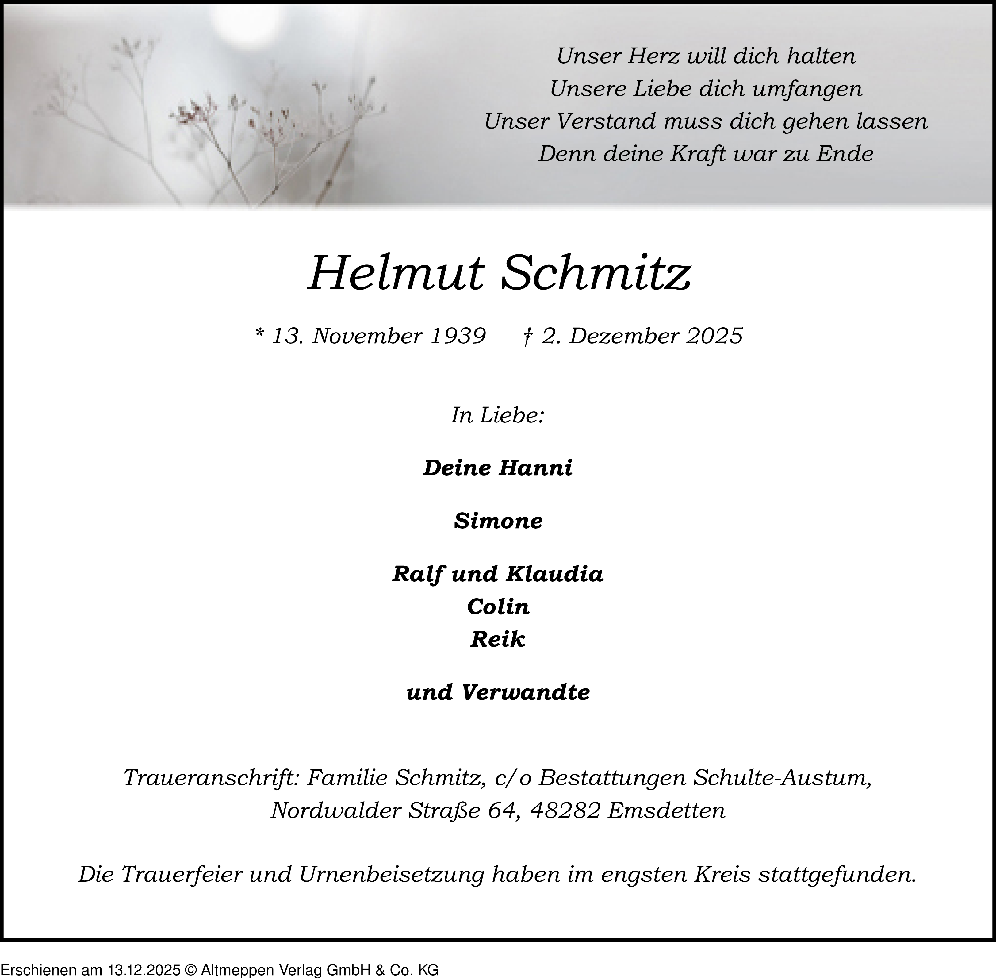 Anzeige vom 13.12.2025
