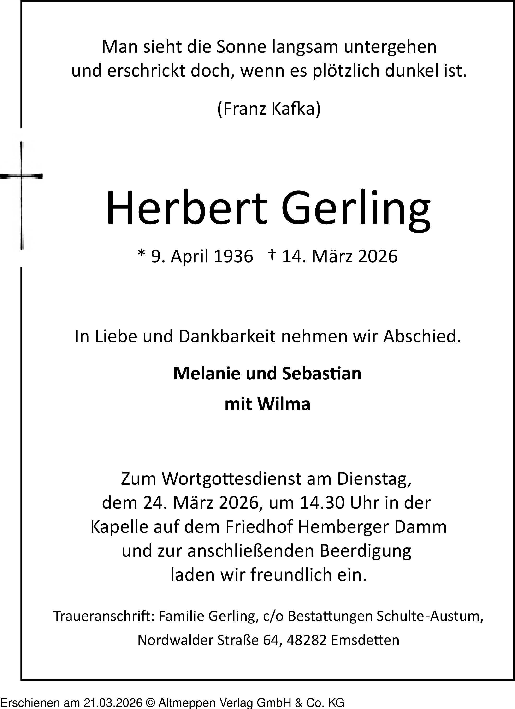 Anzeige vom 21.03.2026