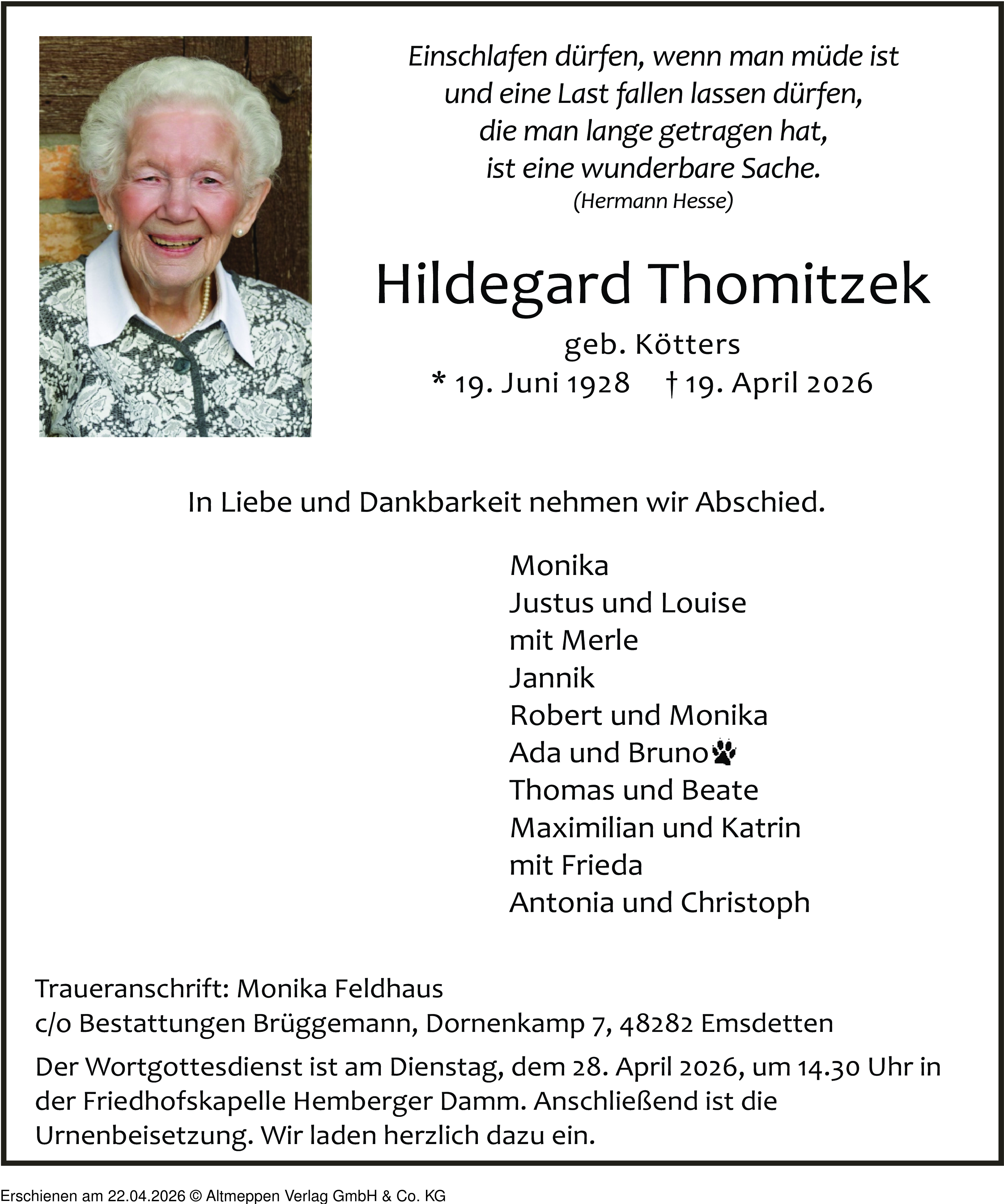 Anzeige vom 22.04.2026