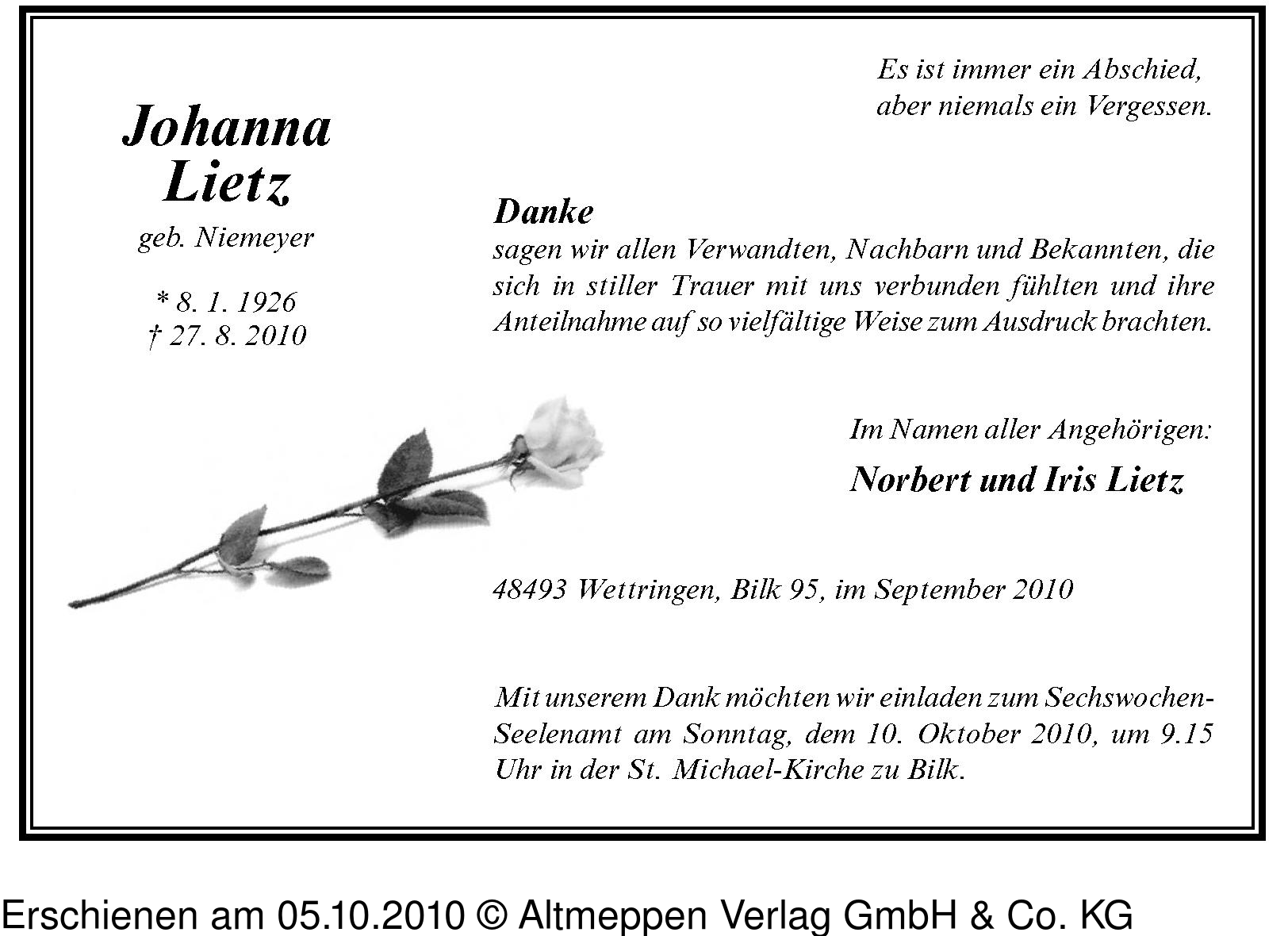 Anzeige vom 05.10.2010