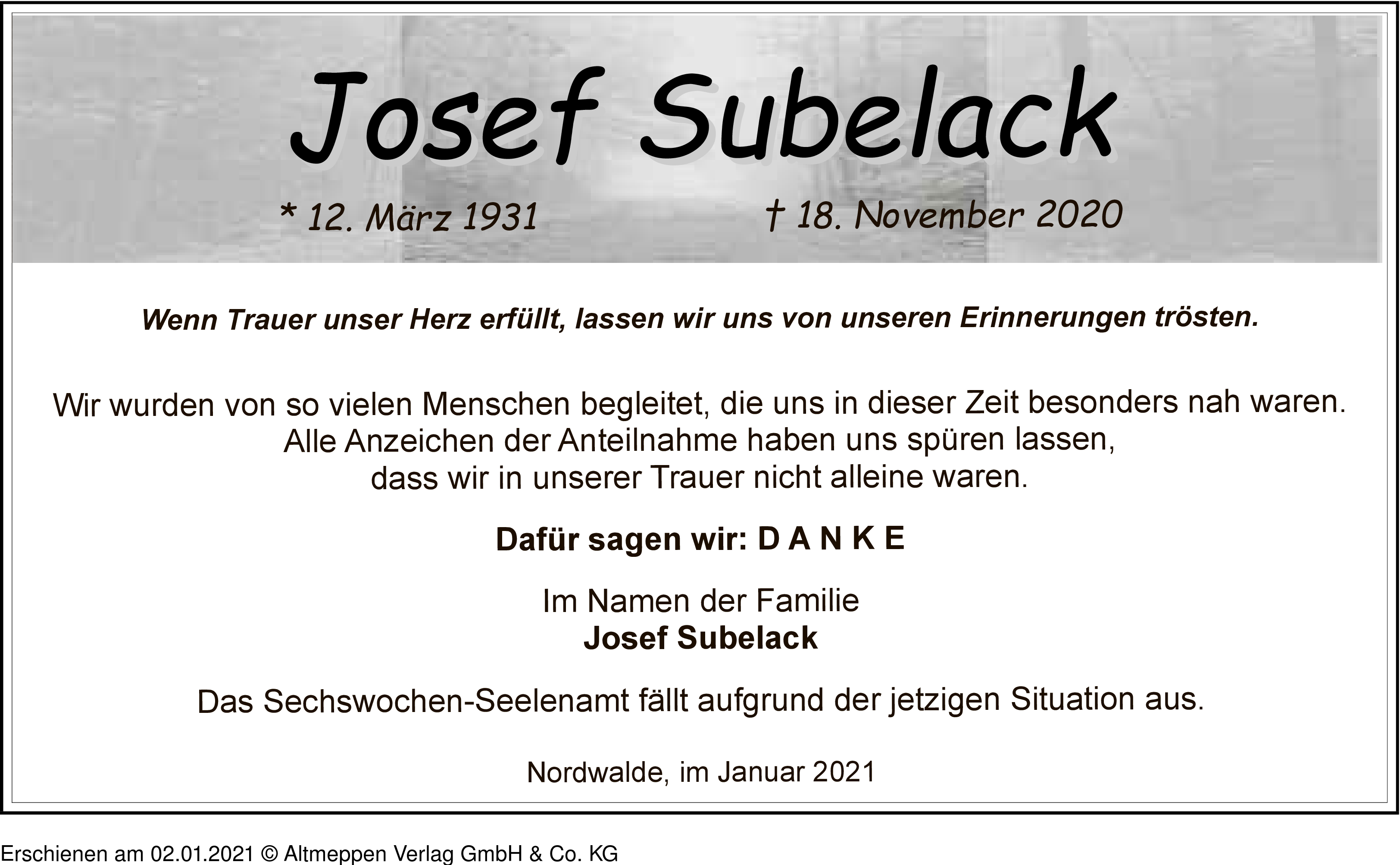Anzeige vom 02.01.2021