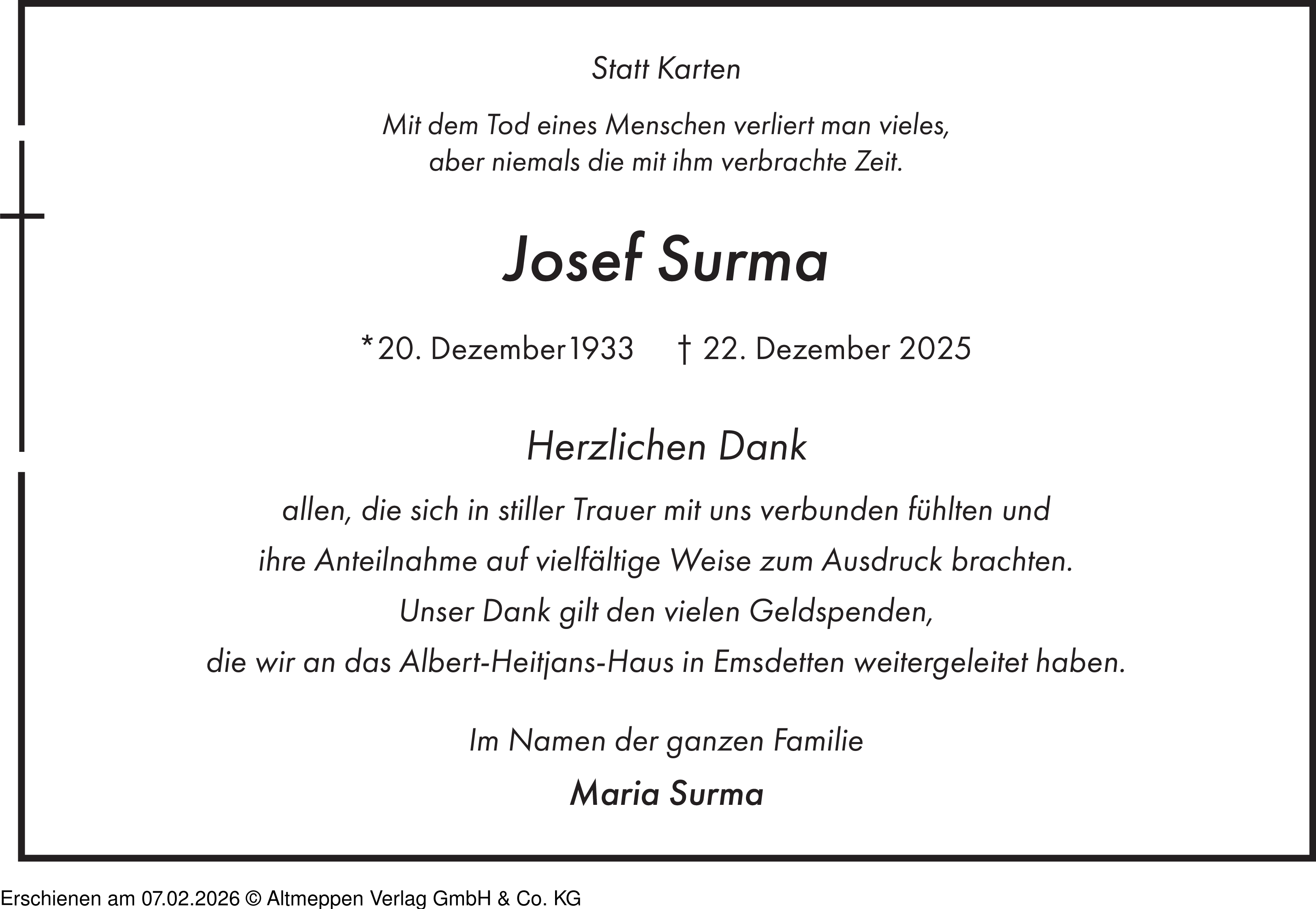 Anzeige vom 07.02.2026