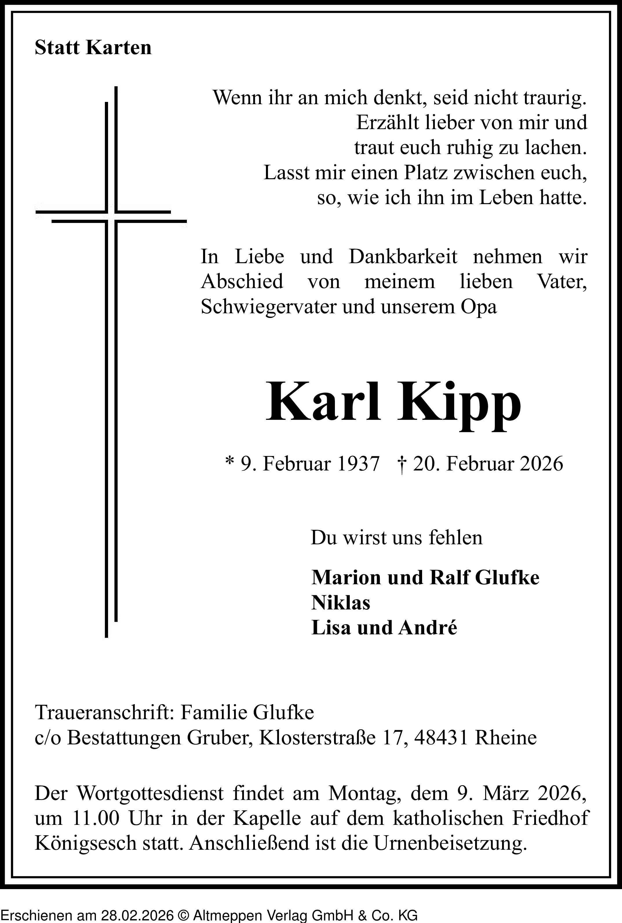 Anzeige vom 28.02.2026