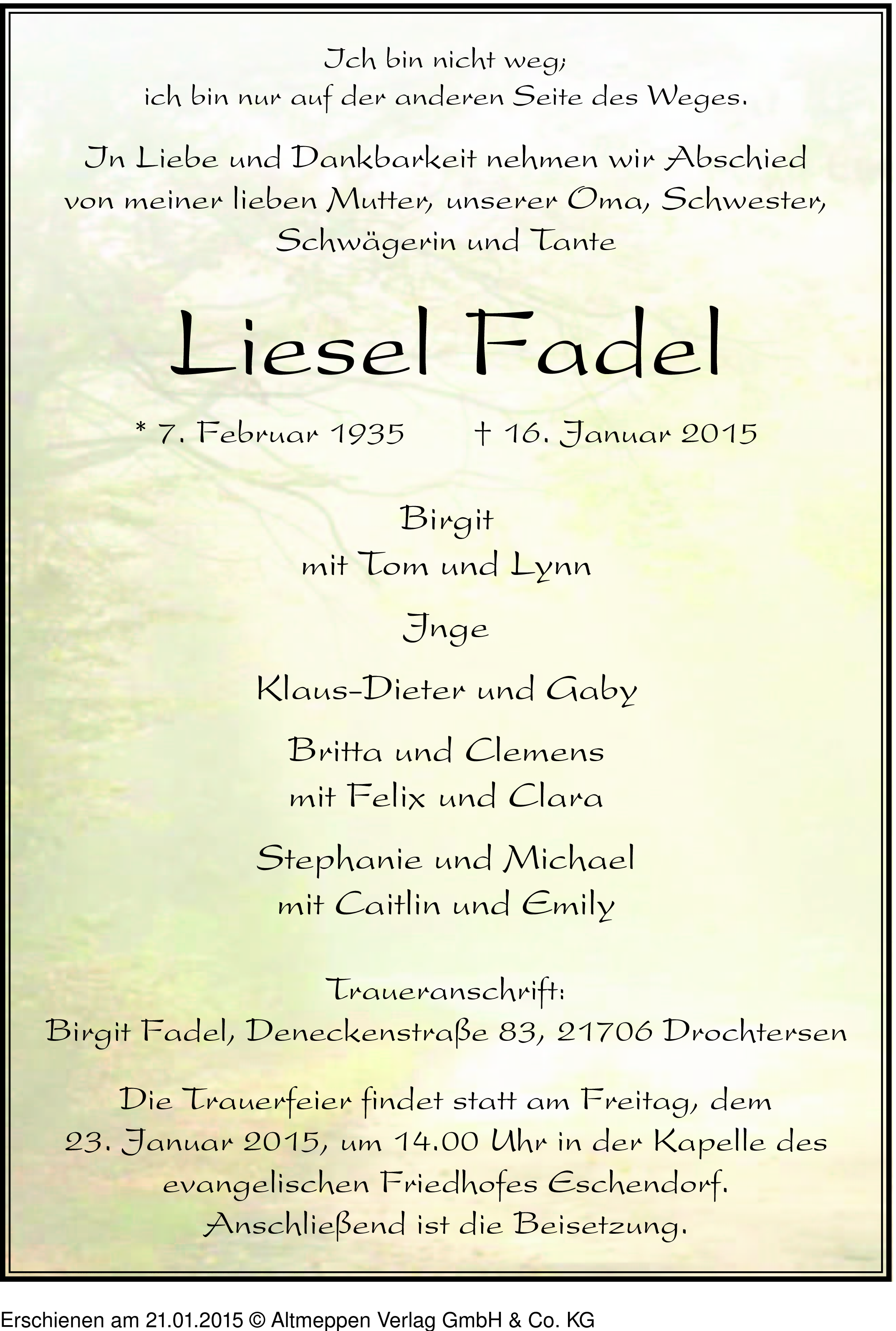 Anzeige vom 21.01.2015