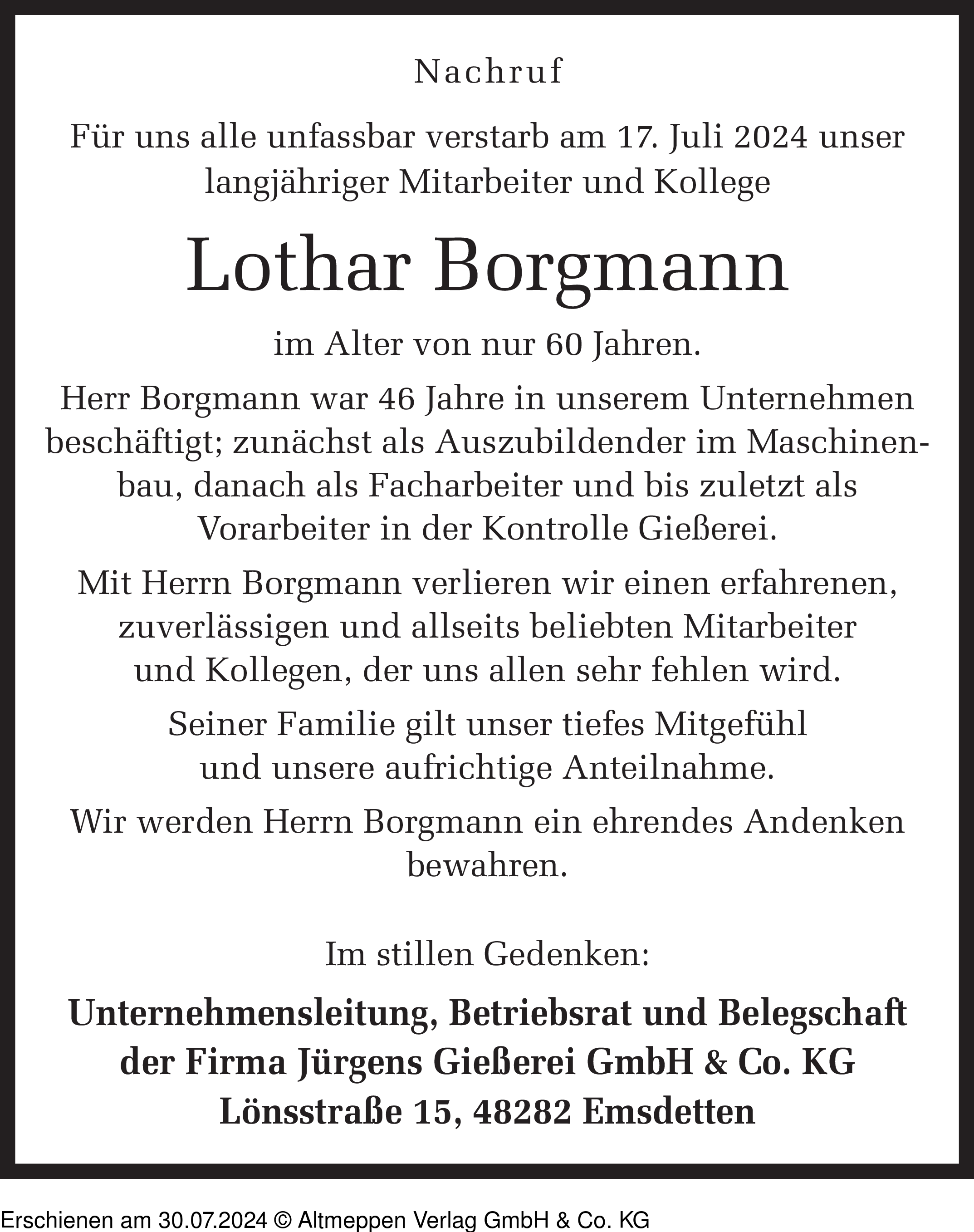 Anzeige vom 30.07.2024