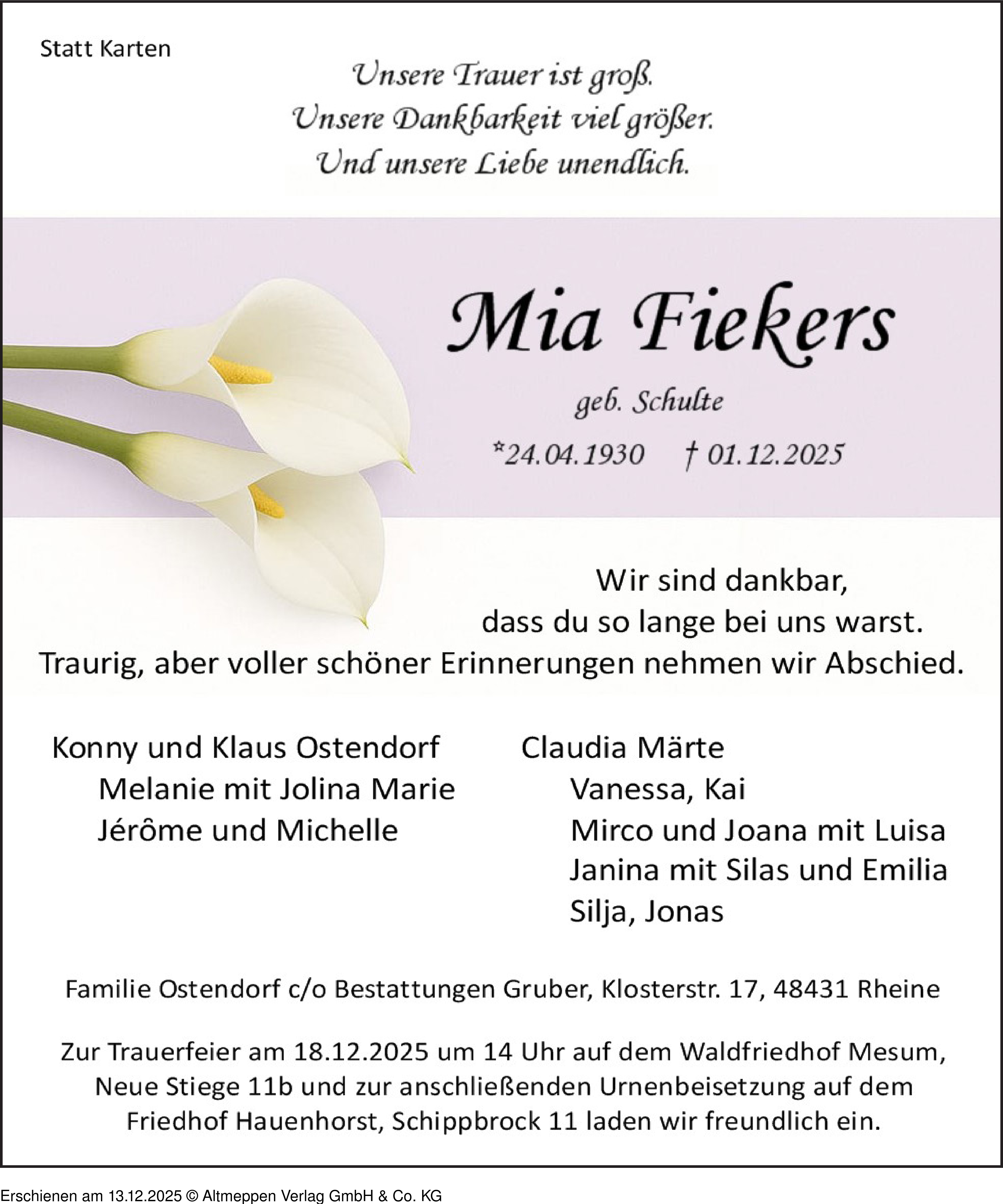 Anzeige vom 13.12.2025